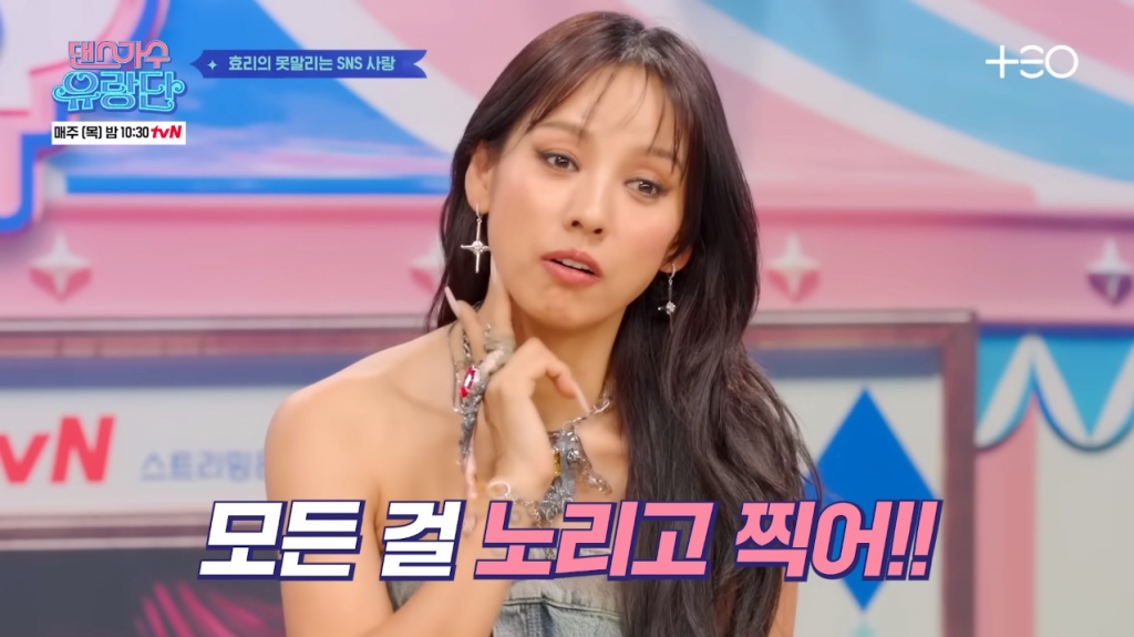 또한 이효리는 최근 다시 시작한 SNS(소셜네트워크서비스) 활동에 대한 질문에 "난 모든 걸 노리고 찍는다. 모든 걸 SNS용으로 생각하고 찍고 있다"고 답했다. 홍현희는 "오늘도 지하주차장에서 5분 일찍 와서 찍고 있더라"라고 거들었다.
