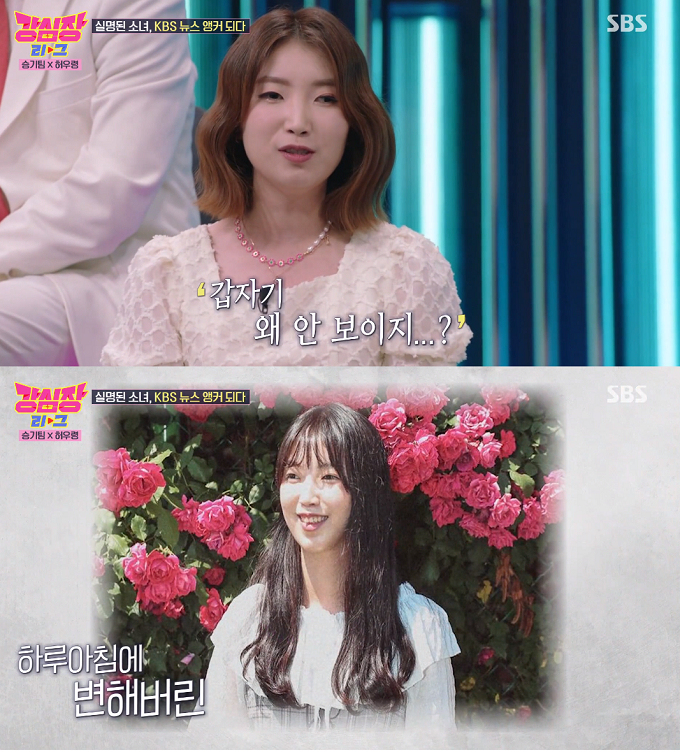 지난 13일 방송된 SBS 예능프로그램 '강심장리그'에서는 '승기팀'으로 허우령 아나운서가 출연해 어느 날 갑자기 실명하게 된 사연을 공개됐다.