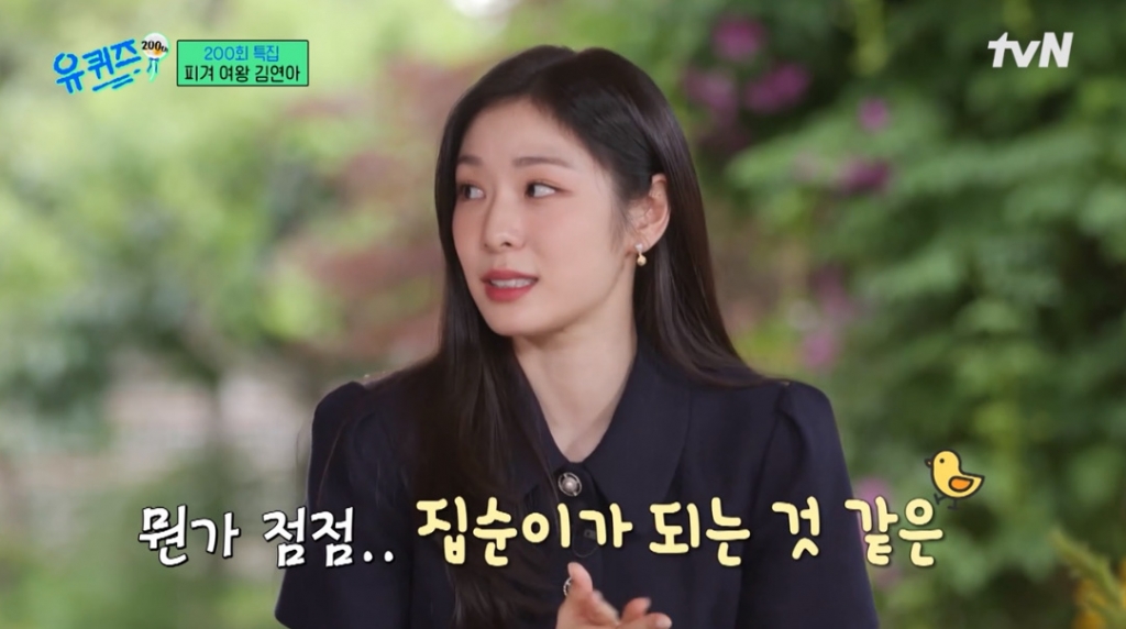 이에 김연아는 "저는 그렇게 집순이 스타일은 아니었는데 뭔가 점점 집순이가 되는 것 같다. 뭔가 점점 귀찮아지고 저는 MBTI(16가지 성격유형) E(외향형)인데 점점 I(내향형)이 된다는 얘기를 최근에 많이 했던 것 같다"고 답했다.