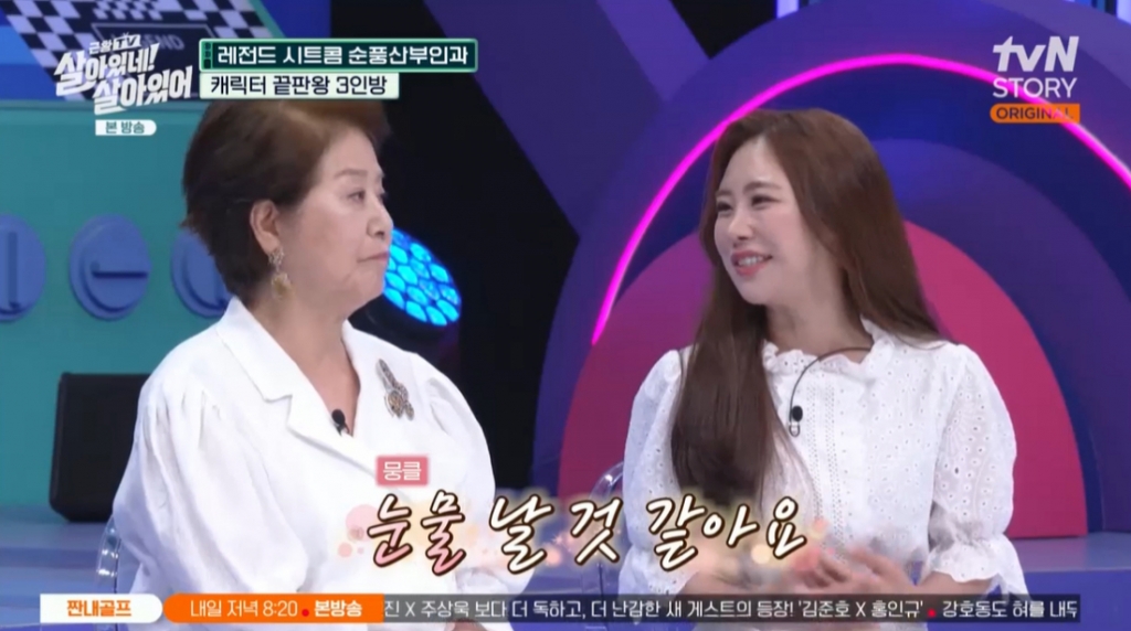 13일 방송된 tvN STORY 예능 '살아있네! 살아있어'(이하 '살아있네')에는 시트콤 '순풍산부인과'의 주역인 배우 선우용녀, 김애경, 김성은이 게스트로 출연했다.
