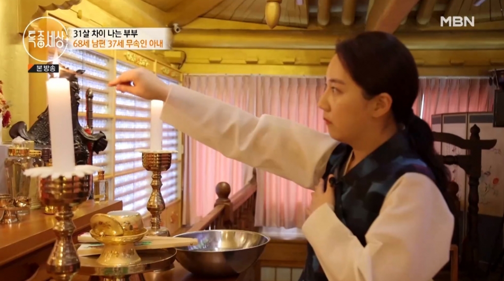가족 반대를 무릅쓰고 신내림을 받은 무속인 김근해(37)가 31살 연상의 남편 박윤수(68)에 대한 고마움을 표했다.