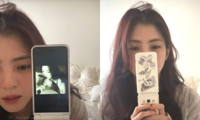 한소희는 4일 SNS(소셜네트워크서비스)를 통해 진행한 라이브 방송에서 새로 구입한 폴더폰을 공개했다.