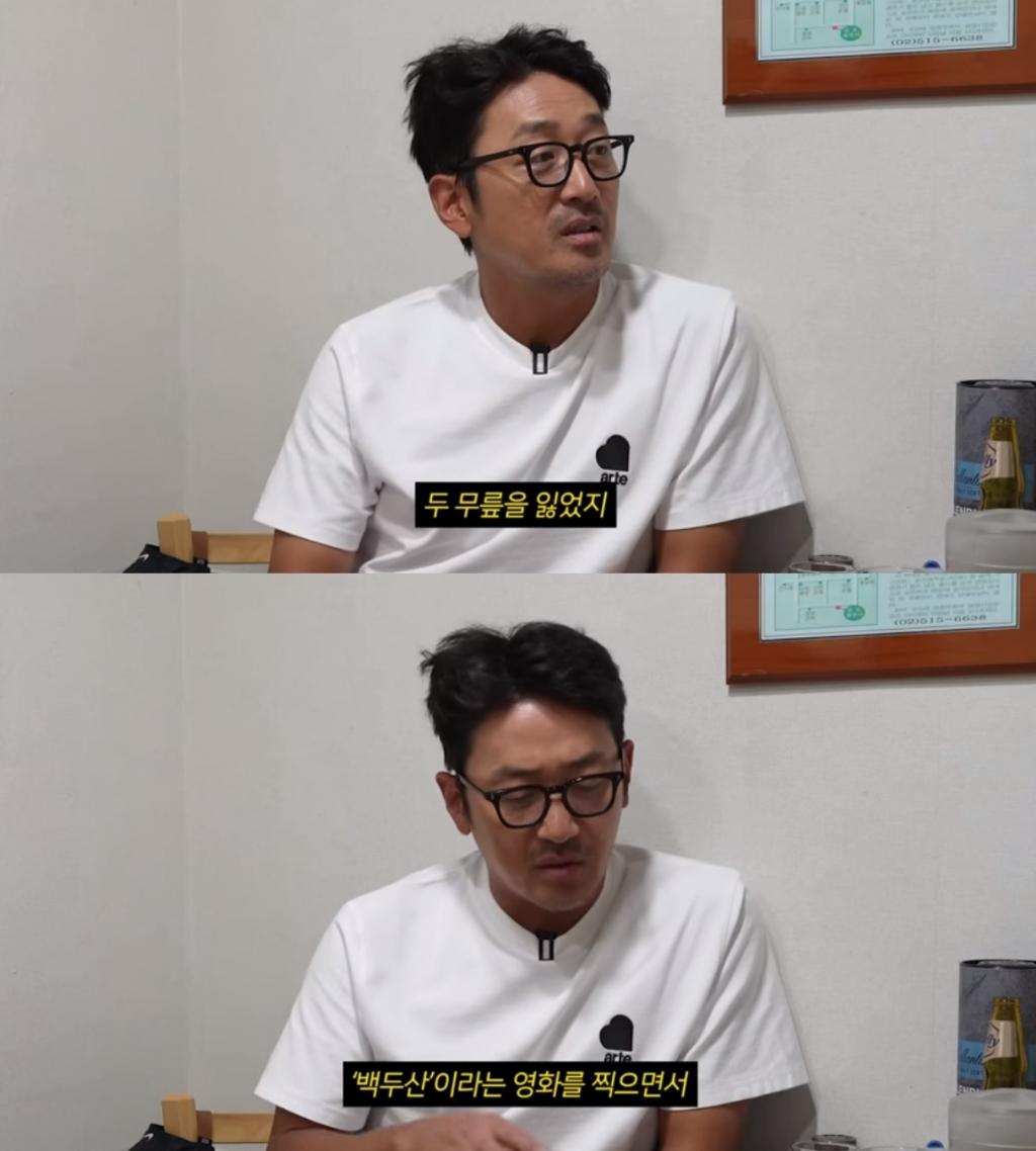 배우 하정우가 영화 '백두산' 촬영 이후 두 무릎의 연골을 40%가량 제거했다고 털어놨다.