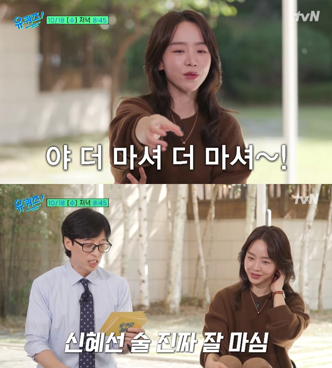 배우 신혜선이 주량 20병 목격담을 언급한다.