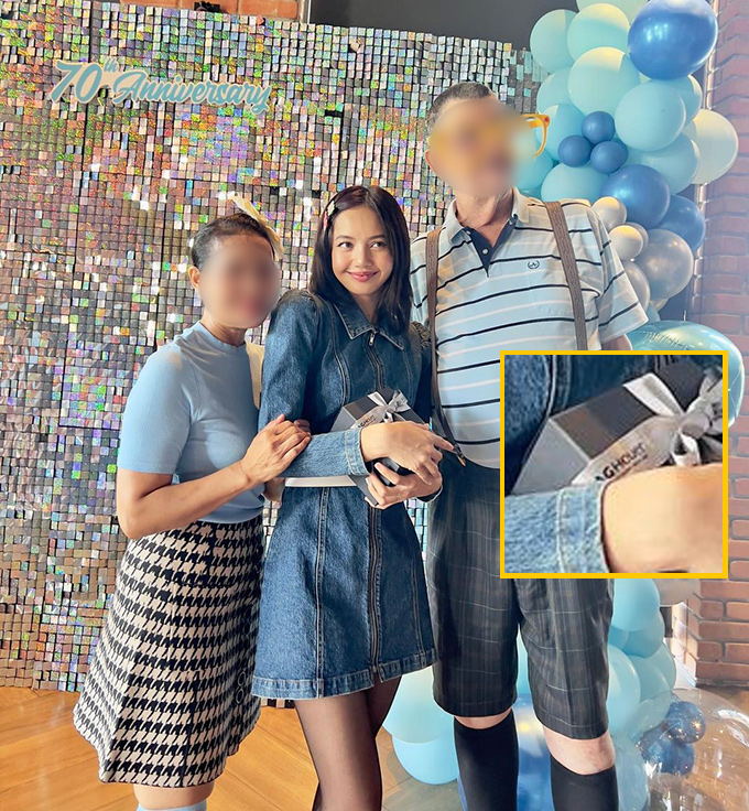 공개된 사진 속 리사가 럭셔리 시계 브랜드 '태그호이어'(Tag Heuer) 리본으로 묶인 상자를 들고 있는 것으로 보아 해당 브랜드 제품을 선물한 것으로 보인다. '태그호이어'는 리사의 열애설 상대인 프레데릭 아르노가 CEO(최고경영자)로 있는 브랜드라 눈길을 끈다.