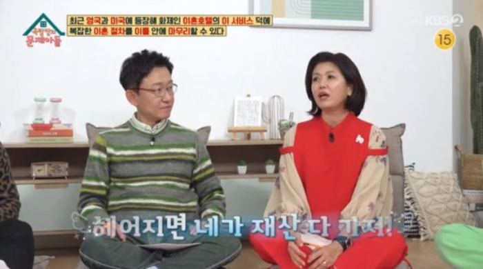 제작진은 이날 퀴즈로 미국 뉴욕시에 위치한 '이혼 호텔'을 소개했다. 복잡한 이혼 절차를 이틀 만에 마무리해주는 '이혼 호텔'만의 서비스에 대해 물었고, 진양혜는 곧바로 정답을 맞췄다. 정답은 호텔에 이혼 전문 변호사가 상주하는 것이었다.