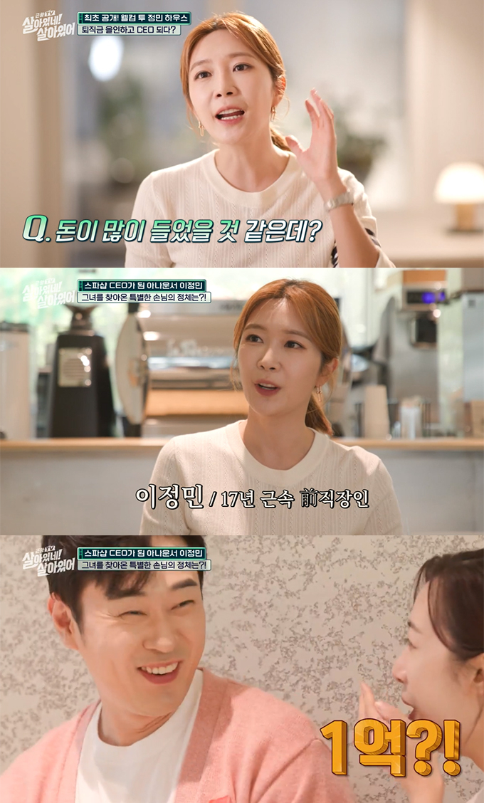 이정민은 숍에 돈이 많이 들었다며 "상상했던 것보다 돈이 많이 들었다. 퇴직금 전부와 은행 빚"이라고 말하고는 웃어 보였다.