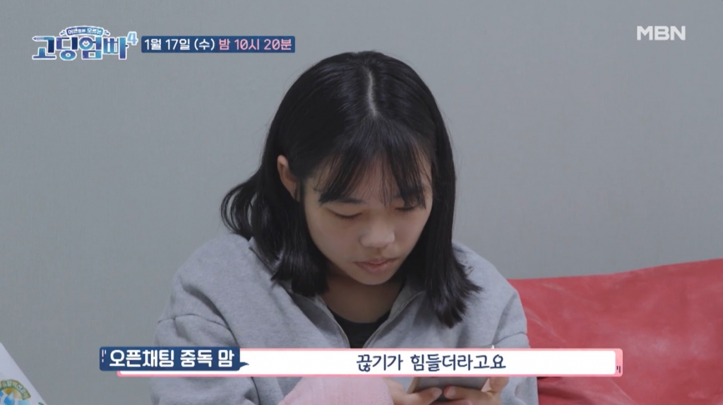 제작진에 따르면 이화연 씨는 오픈 채팅에만 매달리는 딸을 훈계하지만 벽과 대화하는 기분이라며 새카맣게 탄 속내를 털어놓고, 이에 대해 조영은 심리상담사는 "바로 보상받을 수 없는 육아 대신 즉각적인 쾌락만 찾는 상황"이라고 진단한다.