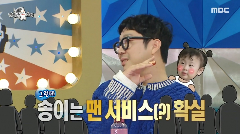 방송에서 MC 김구라는 하하에게 "자녀 덕을 보고 있다고 들었는데 무슨 얘기냐"고 물었다. 하하는 가족 예능에 출연했다며 "(막내딸) 송이가 방송 괴물이다"라고 했다.