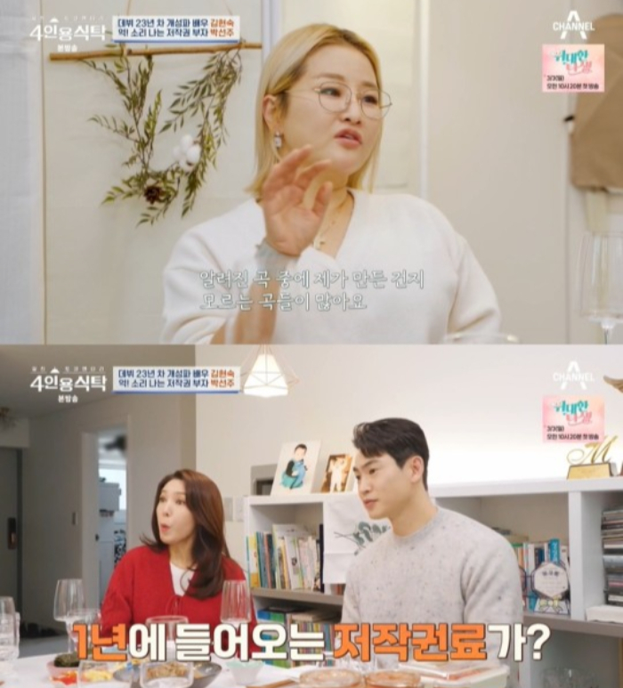 박선주는 26일 방송된 채널A '4인용식탁'에서 자신의 저작권료 수입을 공개했다.
