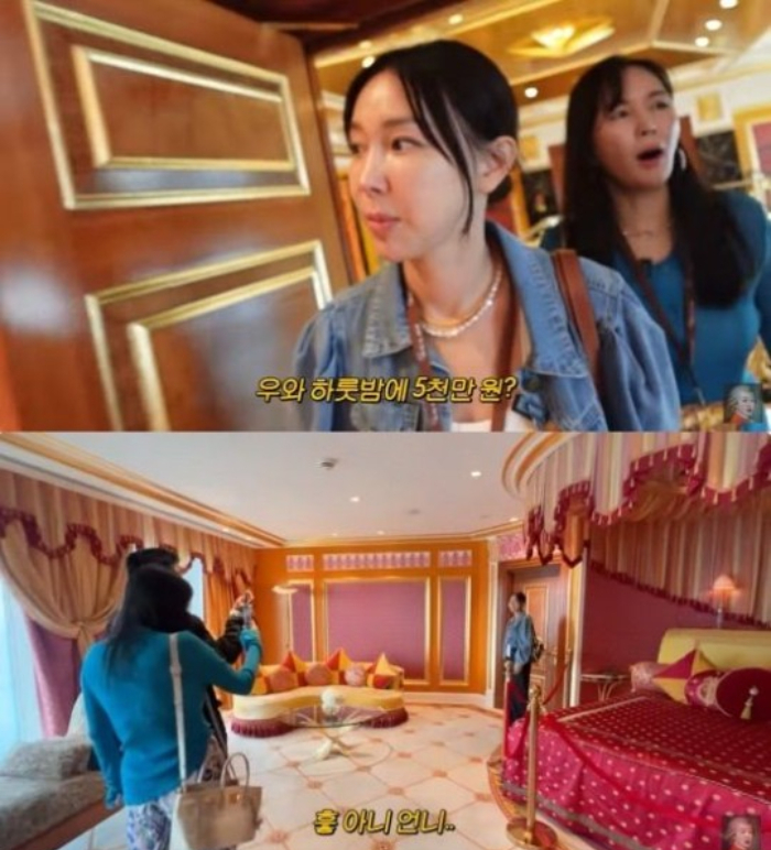 구경을 마친 이지혜는 "내 인생에 7성급 호텔 스위트룸을 다 봤다. 숙박료를 나누면 얼마냐. 10분 있었다 치면 우리 200만원어치 번 것"이라고 말해 웃음을 자아냈다.