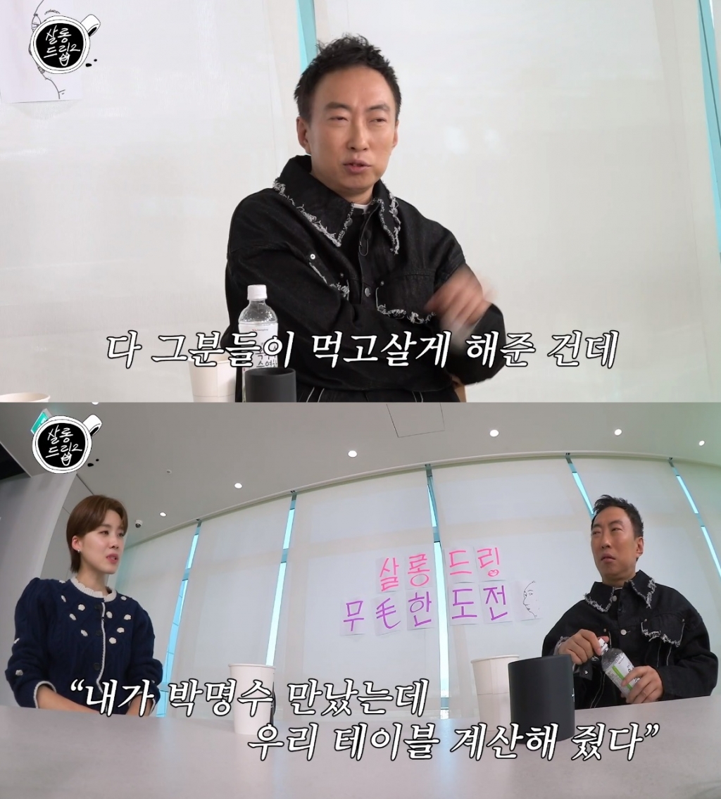 방송인 박명수가 식당 옆 테이블의 밥값을 계산해줬다는 미담에 대해 "그분들 덕분에 내가 먹고사는 걸 보답한 것일 뿐"이라고 밝혔다.