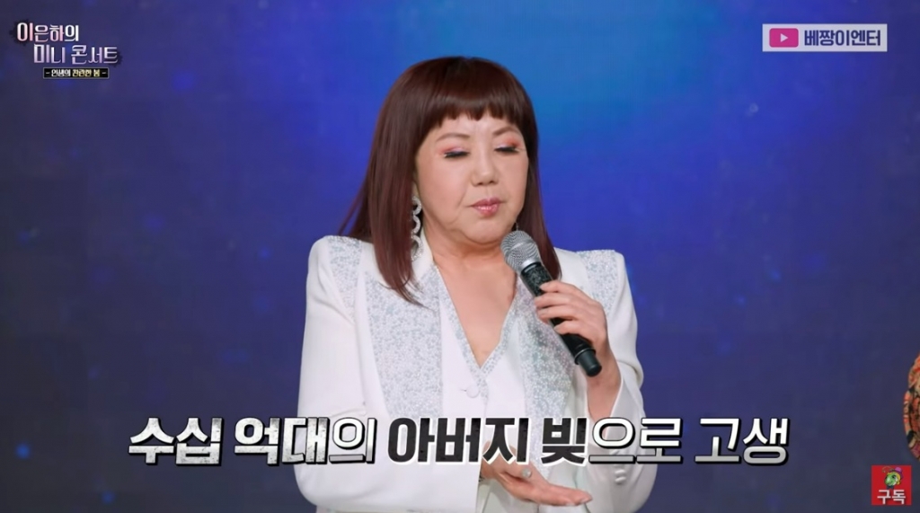 가수 이은하(63)가 30여년 동안 아버지가 진 빚 20억원을 갚아왔다고 털어놨다.
