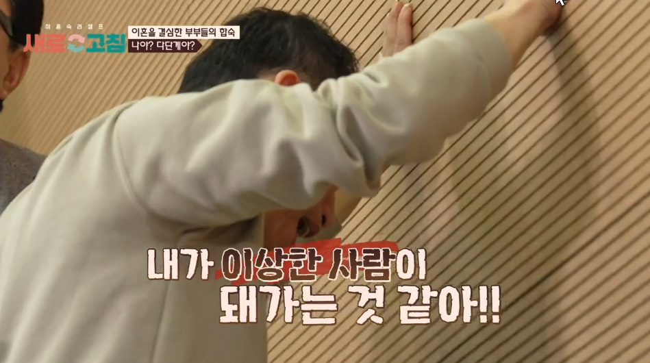 전문가는 "서로 답답한 상황에서 답답한 만큼 벽을 밀고 소리를 질러보라"고 제안했고, 남편은 "내가 이상한 사람이 돼가는 것 같아!"라고 외치며 괴로워했다. 이 모습을 보던 아내도 눈물을 보였다.