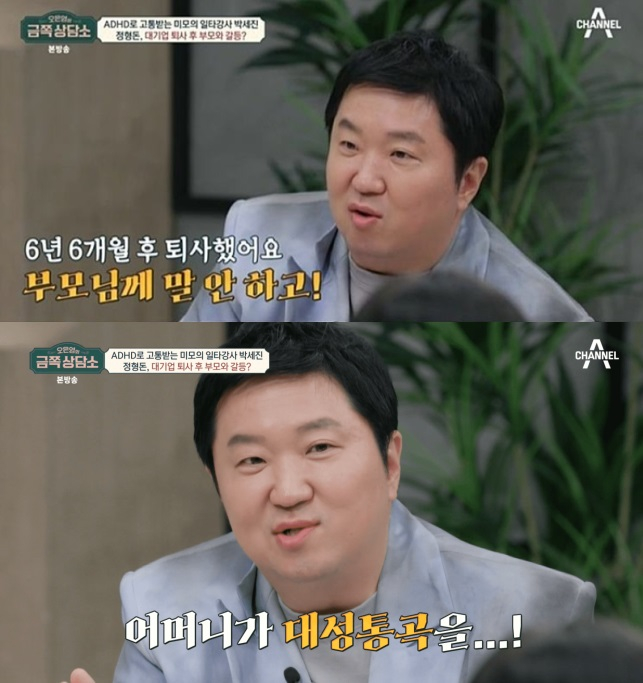 이를 들은 MC 정형돈은 "저도 비슷한 경험을 한 적이 있다"며 "1995년에 대기업 S사에 입사했는데, 6년6개월 후에 부모님께 말하지 않고 퇴사했다"고 밝혔다.