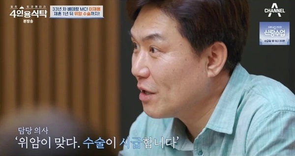아나운서 출신 방송인 이재용이 재혼 1년 만에 위암 판정을 받고 수술대에 올랐던 때를 회상했다.