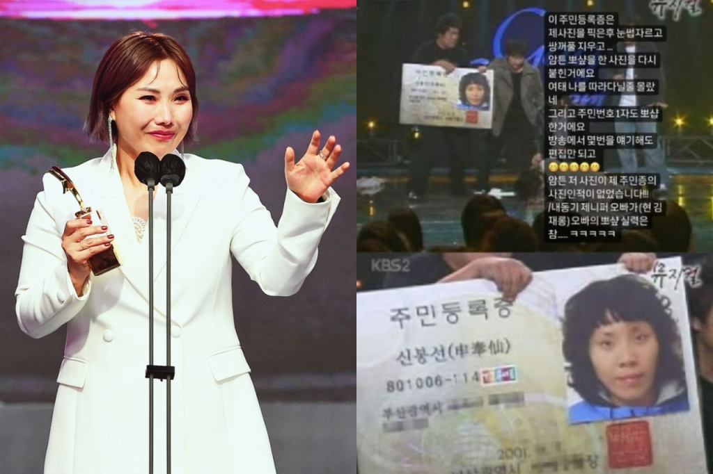 사진에는 과거 KBS 2TV 개그 프로그램 '개그콘서트'에서 공개됐던 신봉선의 주민등록증이 담겼다. 대한민국은 성별에 따라 주민등록번호 뒷자리 첫 번째 숫자가 달라지는데(남성은 1과 3, 여성은 2와 4), 해당 사진 속 신봉선은 뒷자리가 '1'로 시작해 화제를 모았다.