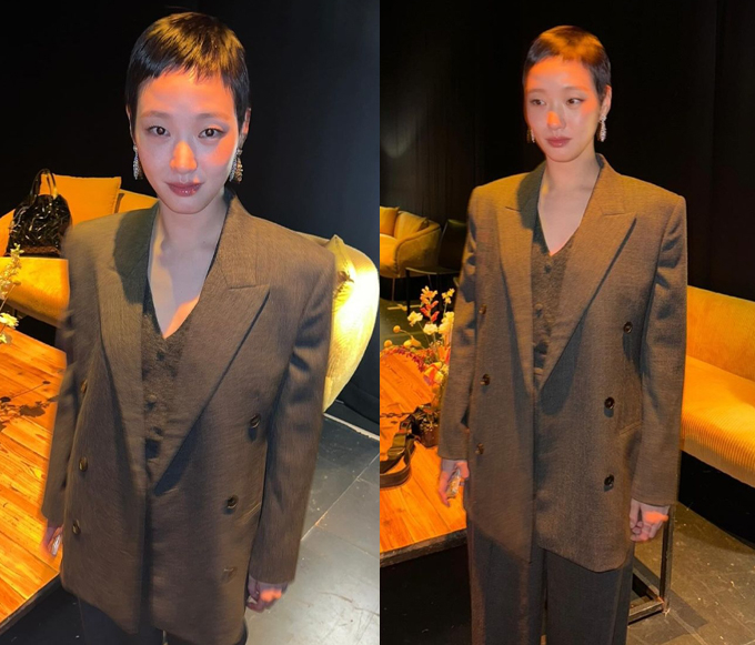 짧은 헤어스타일에 오버사이즈 슈트를 입은 김고은은 커다란 다이아몬드 귀걸이를 매치해 포인트를 더했다.