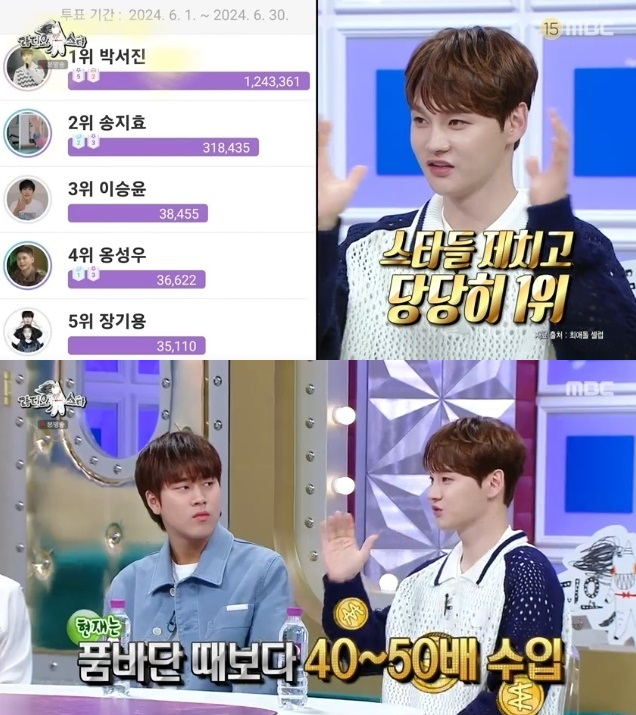 가수 박서진이 과거 품바단에서 장구 공연을 선보일 때보다 행사비가 40~50배 올랐다고 밝혔다.