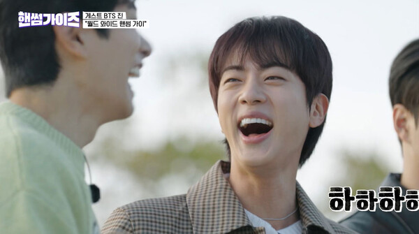 ‘핸썸가이즈’는 첫 방송부터 대형 게스트를 초대해 화제를 모았다. 멤버 가운데 가장 먼저 군 복무를 마치고 솔로 앨범을 발표하는 등 활발하게 활동 중인 방탄소년단 진이 그 주인공이다. 방탄소년단 활동 당시 무대 위에선 카리스마를 보여주던 것과는 달리 자체 콘텐츠로 멤버들과 함께 할 때, 또는 예능 프로그램에 출연할 땐 엉뚱한 매력과 유머러스한 모습으로 시청자의 눈길을 사로잡았던 그다. ‘핸썸가이즈’에서도 진은 특유의 승부욕과 유머감각, 친근한 매력을 발휘하며 프로그램의 재미를 배가시켰다. 등장과 함께 “프로그램 제목에 딱 어울리는 게스트”라는 칭찬을 받은 그는 핸썸팀 소속으로 이이경 오상욱과 차진 호흡을 보여줬다. 진은 퀴즈를 풀 때엔 진중함으로, 빙고 장소로 이동하는 동안엔 장난기 넘치는 모습으로 눈길을 끌었다. 아미들에게는 새로운 사람들과 함께 할 때 드러나는 진을 보는 즐거움을, 시청자들에게는 세계적인 아이돌의 또 다른 면모를 알아갈 수 있는 시간을 선사했다. 비록 그의 팀은 게임에서 패배했고, 팀원들의 배신(?)으로 진은 벌칙을 수행해야 했지만, 특유의 능청스러움과 그 과정마저도 웃음으로 승화하며 예능에 자연스럽게 녹아들었다.