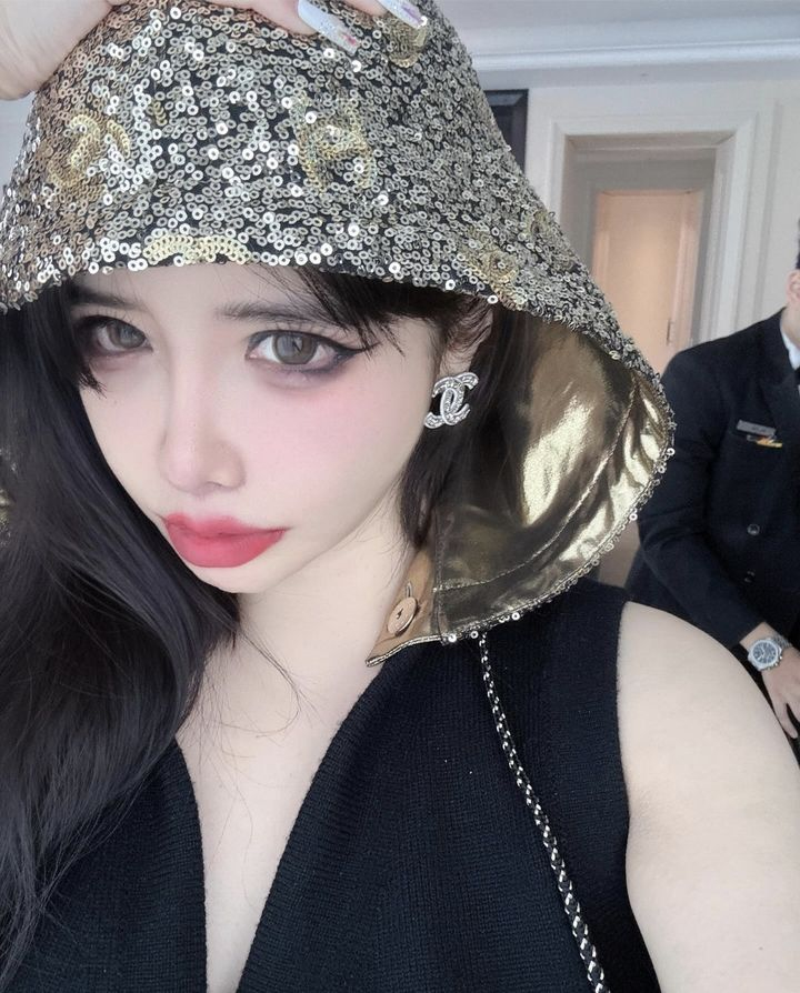사진 속 박봄은 블랙 민소매 상의에 골드 스팽글 후드를 입고 커다란 명품 로고 모양의 귀걸이를 착용해 럭셔리한 분위기를 연출했다. 다이어트에 성공한 모습을 보였다.