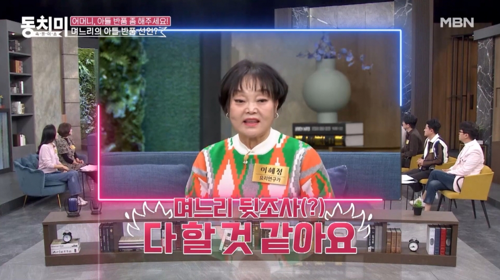 그러면서도 "그런데 며느리가 '반품'이라는 표현을 쓴다면 며느리 뒷조사를 다 할 것 같다"고 폭탄 발언을 해 웃음을 안겼다.