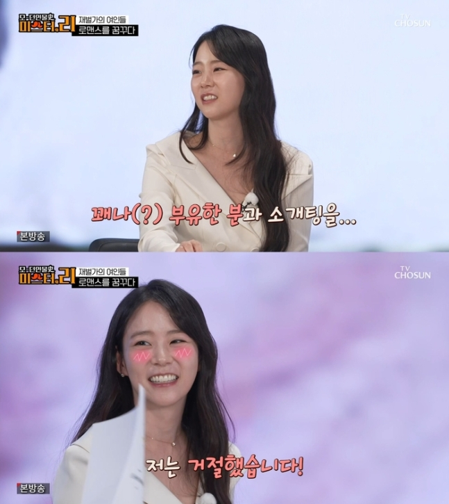 한승연은 "나는 좋진 않았다. 2세 느낌이 있었는데 상식이 좀 달랐다고 해야 하나. 나는 거절했다"고 말했다.