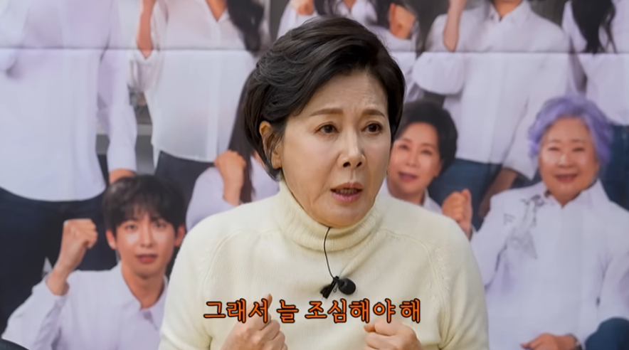 이어 박정수는 "특히나 얼굴이 예쁘장하니까 국민들이 조금 용서치 않는 게 있지 않냐. 그렇기 때문에 정말 조심해야 한다. 내 몸이 내가 아니다. 내가 극을 하고 있는데 만약에 넘어지면 (극 전체에) 지장을 주는 거 아니냐. 그래서 늘 조심해야 한다. 건강도 조심해야 하고 어디 갈 때도 조심해야 한다"고 강조했다. 이에 노주현은 "세상 풍파 안 겪은 여자애가 견디긴 힘들었을 것"이라 안타까워했다.