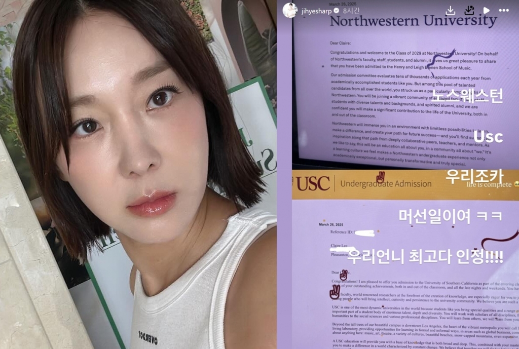 공개된 사진에는 미국 노스웨스턴대학교와 서던캘리포니아대학교(USC)로부터 받은 합격 메일이 담겼다. 노스웨스턴대학교는 1851년 설립된 연구 중심 사립 종합대학교로 국내외 교육평가에서 세계 최고 수준의 대학으로 꼽힌다.