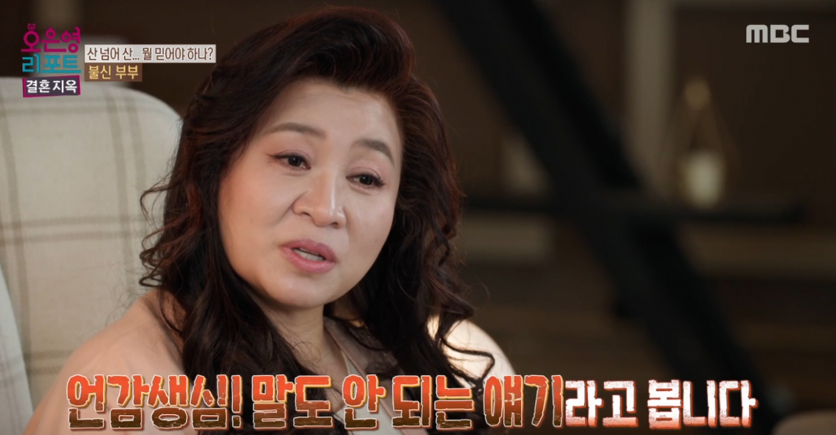 지난 21일 방송된 MBC '오은영 리포트-결혼 지옥'에서는 오은영, 소유진, 김응수, 박지민, 문세윤과 불신 부부가 만났다.