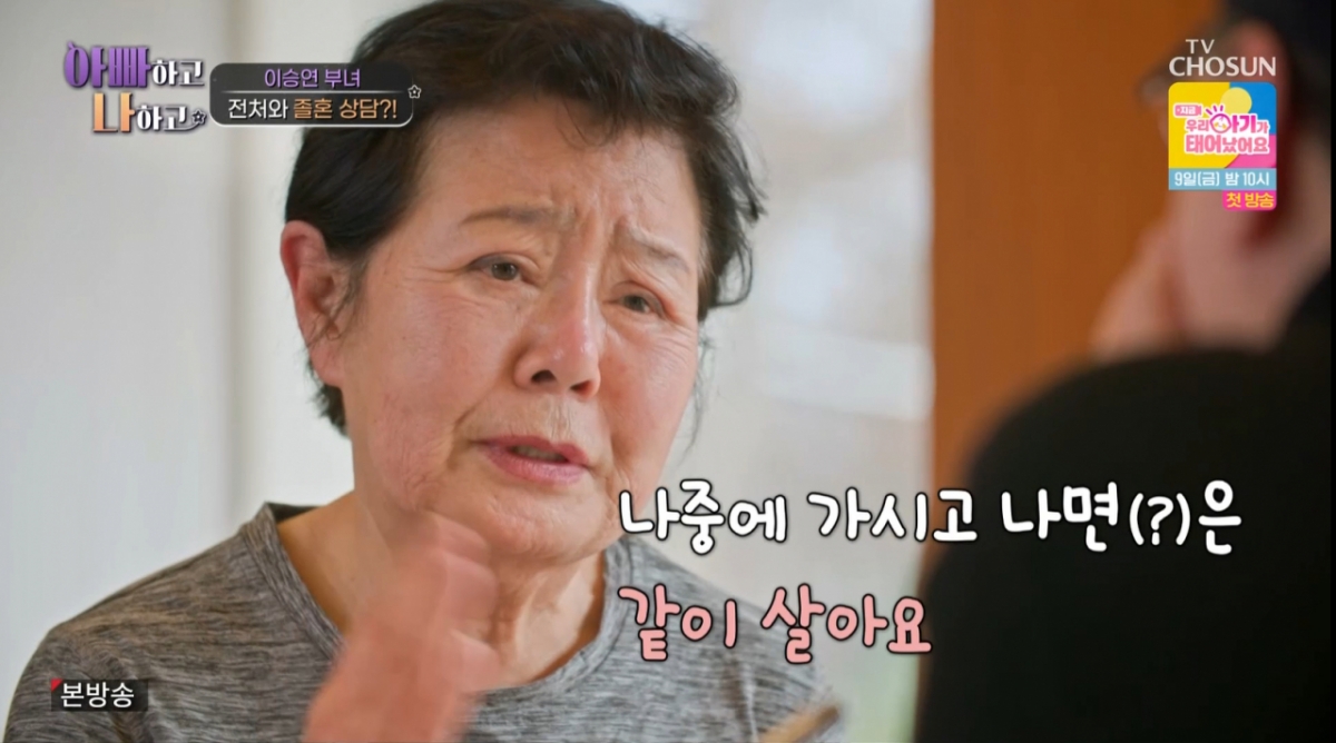 이후 잠시 이승연이 자리를 비웠고 길러준 어머니는 낳아준 어머니에게 "딸이 없으니까 물어보겠다. 졸혼하면 어떨 것 같냐. 졸혼하고 싶다. 편하게 살고 싶다"며 낳아준 어머니의 생각을 물었다.