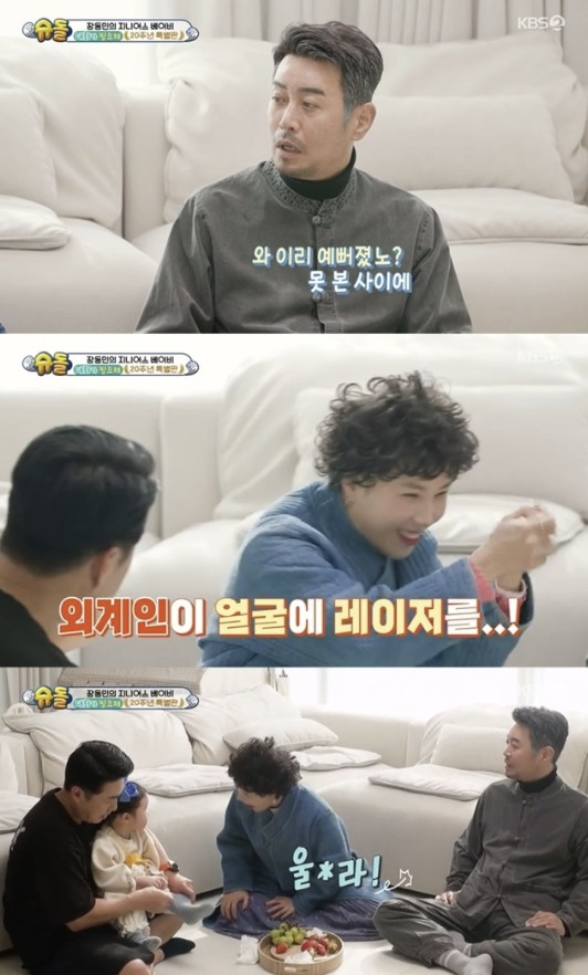 김대희가 재차 "못 본 사이에 왜 이렇게 예뻐졌냐"고 하자 신봉선은 지우를 향해 "외계인이 얼굴에 레이저를 쐈다. 외계인 이름이 울쎄라, 써머지다"라고 말해 모두를 폭소하게 했다.