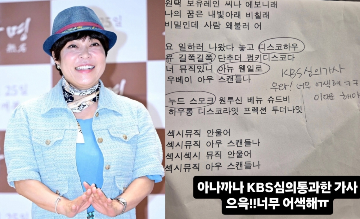 조혜련은 수정된 가사에 동그라미를 치고 "'아나까나' KBS 심의 통과한 가사, 너무 어색하다. 그런데 이대로 해야 한대"라고 적었다.