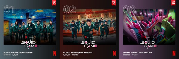 9일 넷플릭스 TOP 10 투둠 웹사이트(Netflix Tudum)에 따르면 '오징어 게임' 시즌3가 6월 30일부터 지난 6일까지 약 4,630만(46,300,000) 시청수를 기록, TOP 10을 집계하는 93개 모든 국가에서 2주 연속 1위를 수성했다. 이에 더해 시즌3는 2주째 모든 국가 1위를 석권한 넷플릭스 시리즈 첫 작품으로 연이어 새로운 기록들을 세우고 있다. 뿐만 아니라, 공개 10일 만에 1억 630만 시청수를 기록하며 넷플릭스 역대 최고 인기 시리즈(비영어) 3위에 등극하는 기염을 토했다. 이는, '오징어 게임' 전 시즌이 넷플릭스 역대 최고 인기 시리즈(비영어)에 나란히 1, 2, 3위에 오른 대기록으로 놀라움을 안긴다.