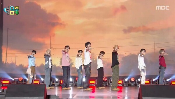 아홉은 9일 오후 방송된 MBC '쇼! 음악중심' 2025 울산 Summer Festival 특집에 출연해 첫 번째 미니앨범의 타이틀곡 '그곳에서 다시 만나기로 해 (Rendezvous)' 무대를 선보였다.