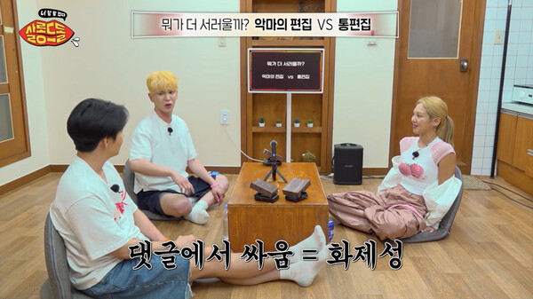 다루는 주제는 ‘전 연인’ ‘연애’ ‘바람의 기준’ 등 민감한 연애담부터 생활형 논쟁, 직업적 고민까지 폭넓다. “출근 시간 9시, 9시부터 일을 시작해야 할까 아니면 9시까지 출근만 하면 될까” “악마의 편집 vs 통편집” 같은 질문이 오간다. 제작진의 경험담이 더해진 질문에도 꾸밈없는 반응을 보인다. 심각하게 답할 이유가 없는 안전지대가 마련되니 오히려 더 솔직하고 가감 없는 대화가 터져 나온다. 세 명의 출연진은 하나의 질문에 전혀 다른 답을 내놓기도, 같은 답을 하면서도 예상 밖의 이유를 밝히기도 한다. 친구들끼리 수다 떠는 듯한 편안함이 ‘살롱드돌’의 가장 큰 매력이다.