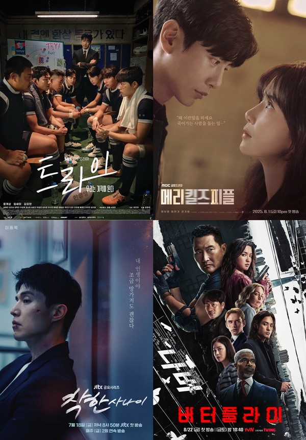 지난 22일 SBS 금토드라마 '트라이: 우리는 기적이 된다'(이하 '트라이'), MBC 금토드라마 '메리 킬즈 피플', JTBC 금요시리즈 '착한 사나이' 그리고 아마존의 프라임비디오 시리즈 '버터플라이'가 tvN에서 방송됐다.