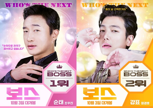 공개된 포스터는 귀여움의 대명사로 폭발적인 신드롬을 일으킨 '캐치! 티니핑' 시리즈 ‘티니핑’ 캐릭터를 연상시키는 조우진, 정경호, 박지환, 이규형의 깜찍한 비주얼로 시선을 사로잡는다. 화사하고 반짝이는 배경과 ‘WHO’S THE NEXT BOSS’라는 문구는 아이돌 데뷔 서바이벌을 방불케 하는 팬심 저격 ‘보스 데뷔 서바이벌’에 나선 순태(조우진), 강표(정경호), 판호(박지환), 태규(이규형)의 모습을 예고해 웃음을 자아낸다.
