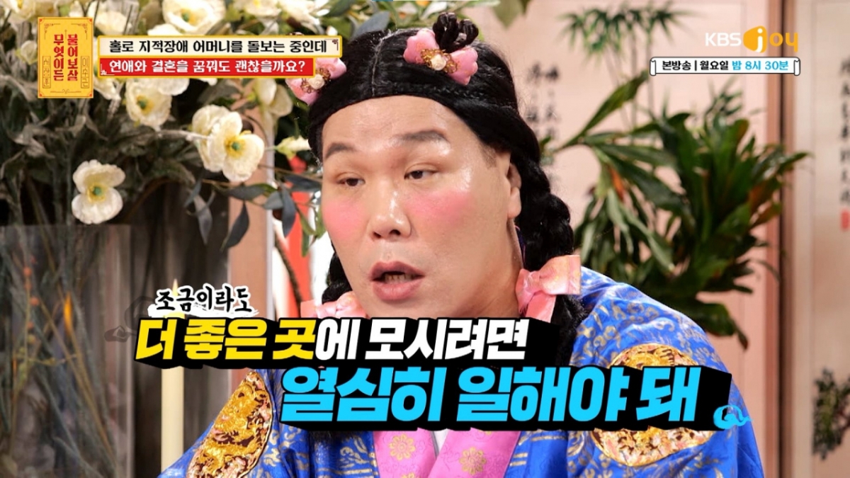 지난 20일 방송된 KBS Joy 예능프로그램 '무엇이든 물어보살' 337회에는 지적장애를 가진 어머니를 돌보며 살아온 39세 남성이 출연해 연애와 결혼을 생각해도 될지 고민이라는 사연을 털어놓았다.