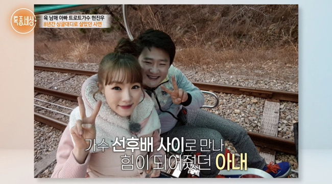 현진우는 그때 후배 가수였던 아내 온희정을 만났다고 했다. 그러나 온희정과의 결혼은 망설였다고.
