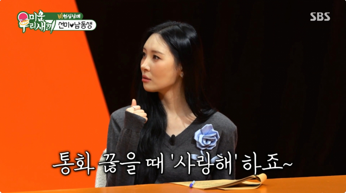 이때 서장훈은 선미에게 "남동생들이 사랑한다고 말을 하냐"고 물었고 선미는 "통화 끊을 때 내가 '사랑해' 하면 동생도 '사랑해' 하고 끊는다"고 말해 모두를 놀라게 했다.