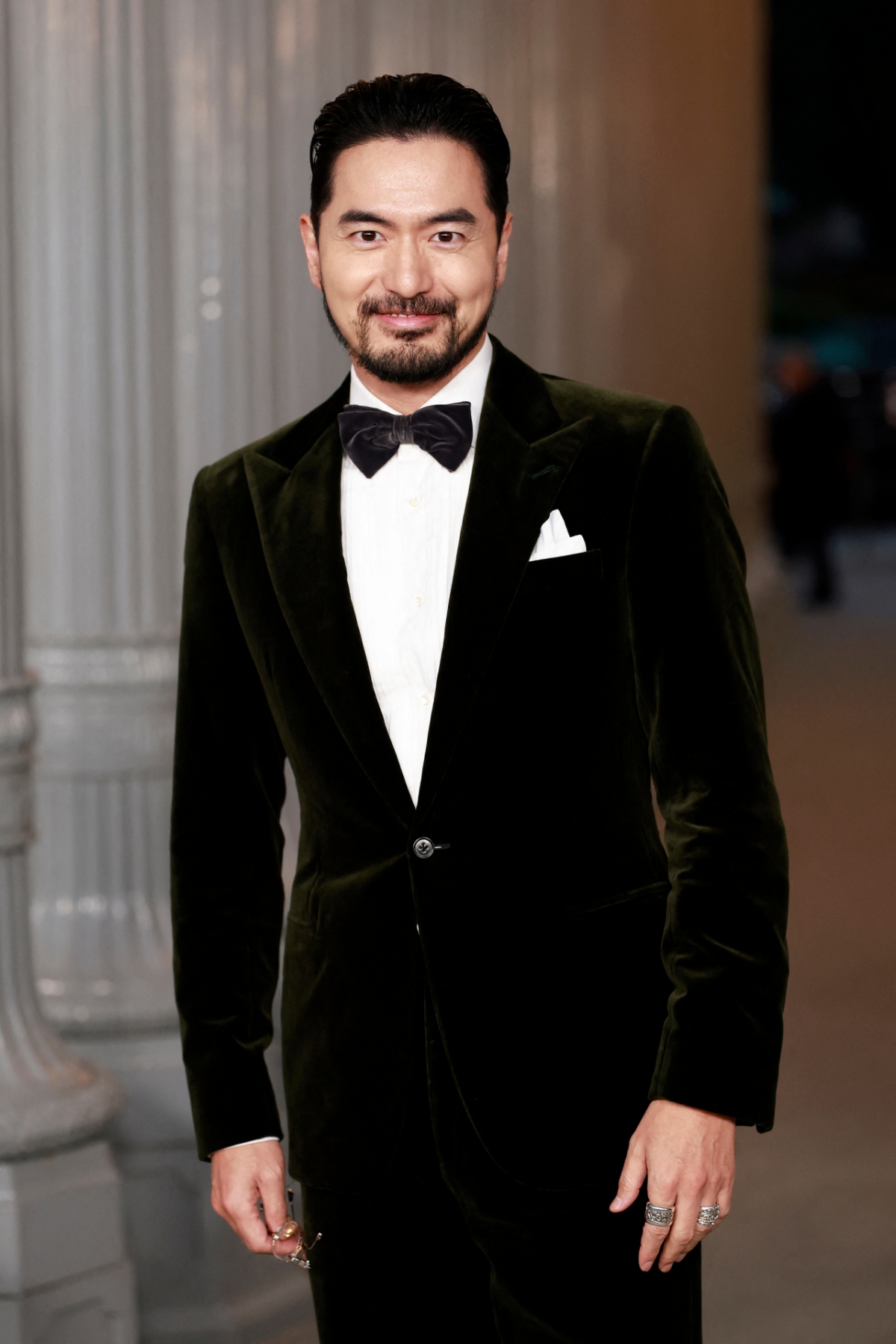 이진욱은 벨벳 턱시도 차림에 볼드한 실버 반지를 매치한 모습이다. 그는 코와 턱에 수염을 기르고 부쩍 커진 체격을 자랑해 시선을 사로잡았다.