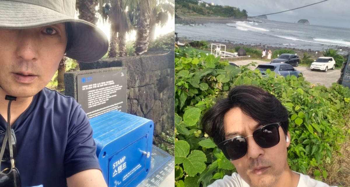 사진엔 제주로 향하는 비행기 안에서 찍은 듯한 구름과 다소 거친 파도가 치는 제주도 풍경 등이 담겼다. 특히 수염도 깎지 않은 채 핼쑥해진 얼굴로 올레길을 묵묵히 걷는 이필모 모습은 뭉클함을 자아냈다.