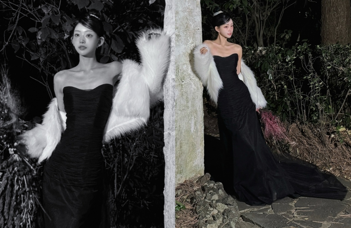 사진 속 최준희는 깔끔한 올림머리에 어깨가 훤히 드러난 검정 오프숄더 드레스를 입고 흰색 털 재킷을 걸친 채 한 손으로 나무를 짚고 서 있다. 마치 오드리 헵번을 연상케 하는 헤어스타일과 의상을 완벽하게 소화한 모습이다.