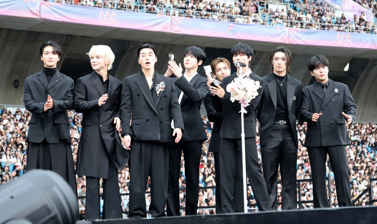 AAA 베스트 아티스트상 에이티즈가 6일 대만 가오슝 내셔널 스타디움에서 진행된 스타뉴스 주최 '10주년 아시아 아티스트 어워즈 2025(10th Anniversary Asia Artist Awards 2025, '10주년 AAA 2025')에서 수상소감을 전하고 있다. 12월 6일~7일 양일에 걸쳐 가오슝 내셔널 스타디움에서 펼쳐지는 '10주년 아시아 아티스트 어워즈 2025(10th Anniversary Asia Artist Awards 2025, '10주년 AAA 2025')'와 페스타 'ACON 2025'는 MTN(머니투데이방송)과 위버스(Weverse)를 통해 각각 TV와 온라인 스트리밍으로 생중계 된다. 2025.12.06