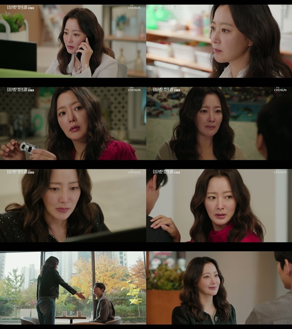 지난 8일 방송된 TV CHOSUN 월화미니시리즈 '다음생은 없으니까' 9회에서 김희선(조나정 역)은 가족을 위한 침묵과 아이에게 떳떳한 부모로 남기 위한 양심 사이에서 흔들리는 맘포티의 내면을 치밀하게 그려내며 시청자들의 몰입도를 높였다.