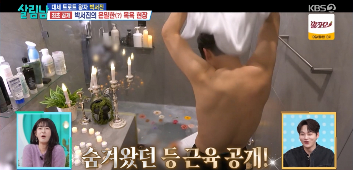 박서진은 "집 치우기 힘들게 해놨네"라면서도 입욕을 준비했다.