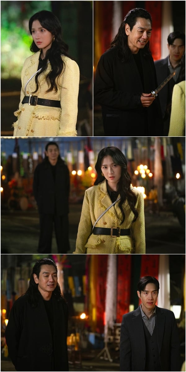 그런 가운데 극의 판도를 뒤흔들 새로운 인물이 나타난다. 공개된 사진 속 은호를 한 발 뒤에서 지켜보는 낯선 남자와 이윤의 모습이 눈길을 끈다. 낯선 남자의 정체는 미스터리 박수무당 ‘장도철’로 그 아우라가 심상치 않다. 함께 서 있는 이윤과의 명확한 관계는 알 수 없지만 '악'과 '악'의 공조를 짐작게 한다.