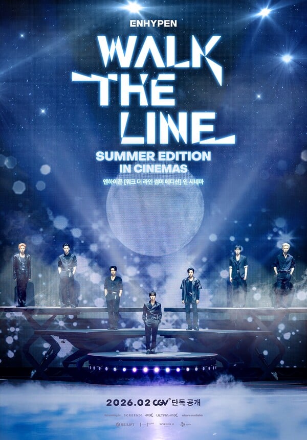 소속사 빌리프랩은 엔하이픈의 월드 투어 'ENHYPEN WORLD TOUR ‘WALK THE LINE’ IN JAPAN -SUMMER EDITION-'(엔하이픈 월드 투어 '워크 더 라인' 인 재팬 -서머 에디션-) 실황을 담은 영화 '엔하이픈 [워크 더 라인 썸머 에디션] 인 시네마'가 내달 27일 국내 개봉한다고 28일 밝혔다. 해외에서는 3월 5일부터 50개 국가·지역, 약 1500개 상영관에서 순차 상영한다.