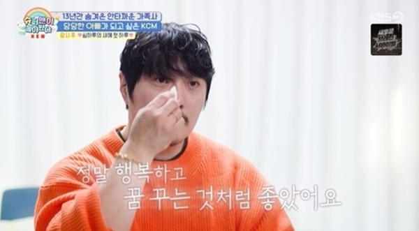 '슈퍼맨이 돌아왔다'에서 가수 KCM이 사랑하는 가족을 13년 만에 공개하며 그동안 가족을 공개하지 못했던 속사정과 가족에 대한 사랑으로 시청자들을 울컥하게 했다.
